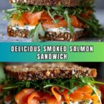A delicious and easy-to-make smoked salmon sandwich featuring toasted whole grain or sourdough bread, creamy dill-flavored cream cheese, ripe avocado, red onion, and fresh arugula or spinach. Perfect for a healthy lunch or light dinner, this sandwich combines fresh, flavorful ingredients with a creamy texture and a touch of black pepper to enhance its taste.