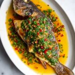 For a wow factor, serve the fish on a bed of thinly sliced cucumbers or tomatoes, which add a crisp texture and fresh flavor contrast. You can also place it atop a nest of glass noodles tossed with a touch of sesame oil for extra elegance and an Asian-inspired twist.