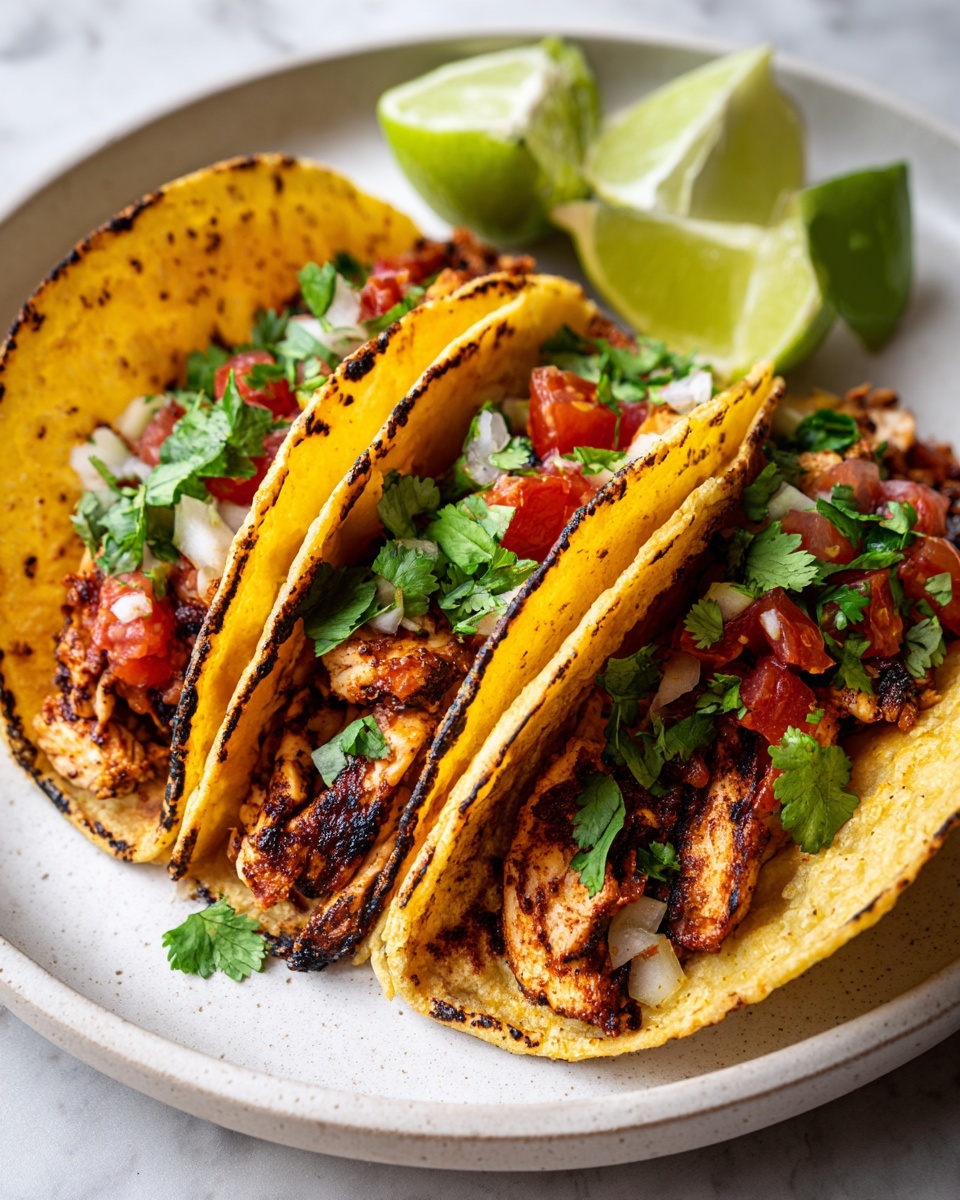 The best tacos truly come alive with garnishes. Fresh cilantro adds herbal brightness and a signature touch, while crumbled queso fresco or feta brings creamy saltiness that contrasts beautifully with the smoky chicken. Never skip the lime wedges; they elevate the whole flavor profile with a tangy burst just before you take a bite.