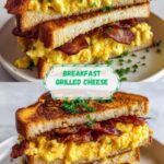 This Ultimate Breakfast Grilled Cheese with Scrambled Eggs and Bacon combines crispy bacon, fluffy scrambled eggs, and melted cheddar cheese sandwiched between buttery toasted bread. Perfect for a hearty morning meal, this recipe delivers a delicious blend of savory flavors and creamy textures that come together in a skillet-grilled sandwich.