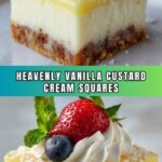 To elevate the presentation and add a bit of flair, consider garnishing your vanilla custard cream squares with a light dusting of powdered sugar or some fresh berries like raspberries or blueberries. A sprig of mint can also add a refreshing touch and a pop of green that beautifully contrasts with the creamy custard and golden pastry.
