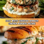 These White Cheddar and Spinach Chicken Burgers combine lean ground chicken with fresh spinach and sharp white cheddar cheese for a flavorful and nutritious twist on the classic burger. Enhanced with Dijon mustard, Worcestershire sauce, and aromatic garlic and onion, these juicy patties are pan-cooked to perfection and served on soft buns with optional fresh toppings.