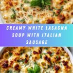 This comforting White Lasagna Soup combines all the flavors of classic lasagna into a creamy, hearty bowl that’s perfect for cozy dinners. Made with seasoned Italian sausage, tender broken lasagna noodles, a blend of ricotta, mozzarella, and Parmesan cheeses, and fresh spinach, this one-pot soup delivers rich Italian-American comfort food with an easy stovetop method.
